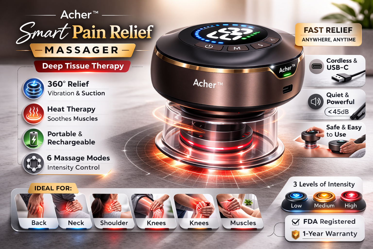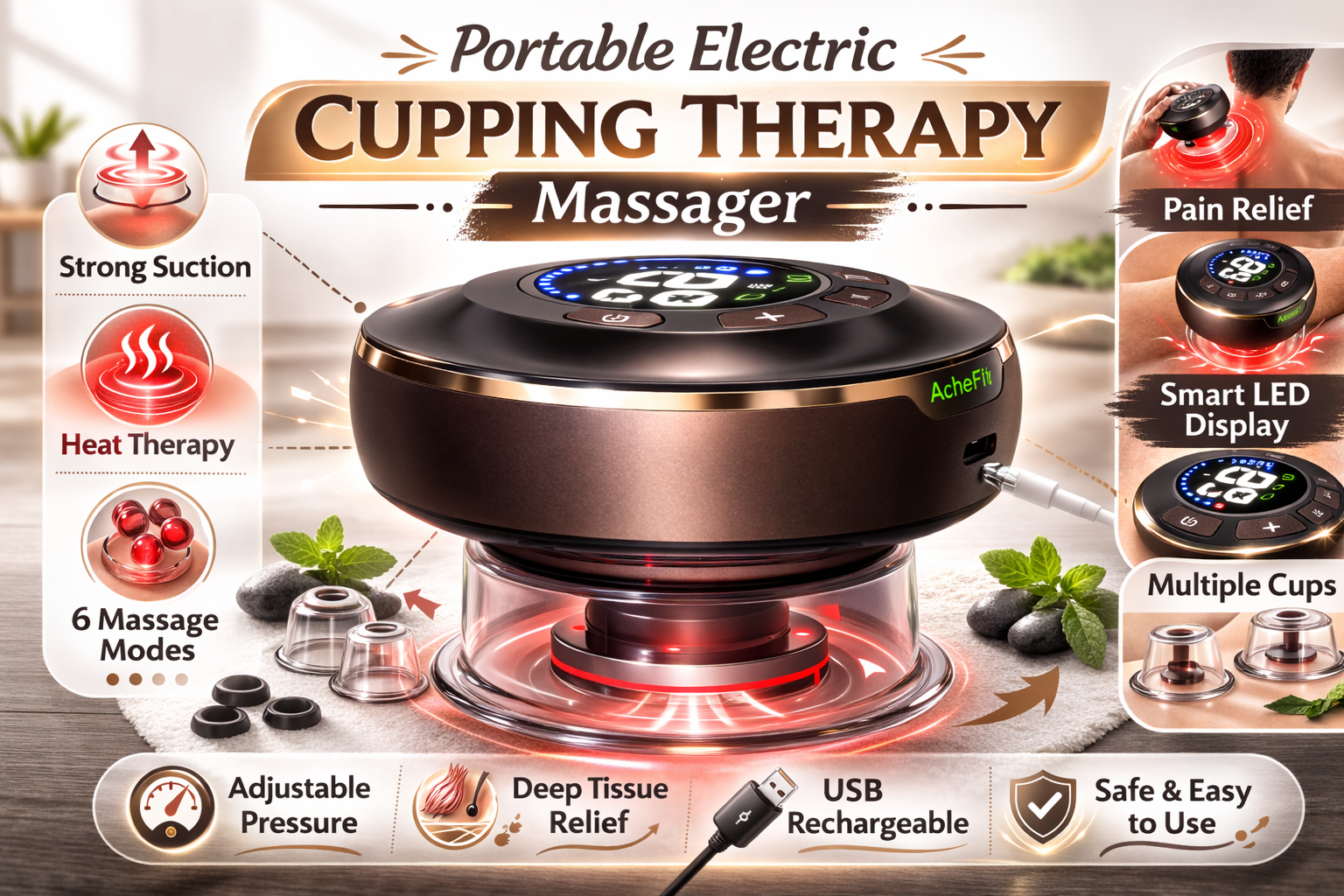Experience targeted relief with the AcheFly Rechargeable Electric Gua Sha Massager, a versatile wellness tool designed for both facial and body therapy. This multifunctional device combines traditional scraping techniques with modern electric technology, featuring smart cupping capabilities and adjustable settings for personalized comfort. The rechargeable battery ensures cordless convenience, while the compact size makes it perfect for at-home treatments or on-the-go use. Ideal for those seeking natural approaches to muscle tension, facial rejuvenation, and overall wellness support.